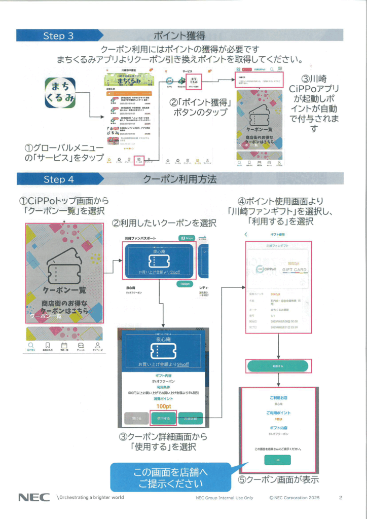 「まちくるみ」では地域のイベントや回覧板、お得なクーポンを閲覧利用ができ、住民とコミュニティのデジタル接点として活用をめざしております。是非ご登録宜しくお願い致します!2つのアプリを登録、連携でクーポン獲得(登録店で使えます)『まちくるみ』 + 『川崎CiPPo』=クーポン獲得